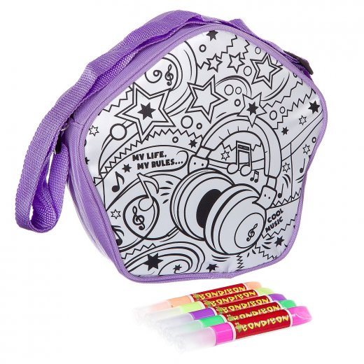 Сумка для раскрашивания Bondibon Диско - увлекательный набор для детского творческого досуга. Набор от Бондибон дает потрясающую возможность создать собственный стиль аксессуара! В наборе 5 специальных маркеров и сумочка размер 30х25х3,5 см. Маленьким модницам нужно лишь выбрать любимые цвета и раскрасить сумочку-основу маркерами. После раскрашивания маркеры надежно высыхают на поверхности, что исключает возможность испачкаться уже во время использования.