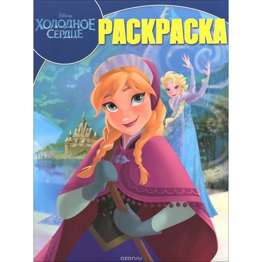 На обложке раскраски от издательства «Эгмонт» изображена очаровательная Анна, образ которой полностью совпадает с экранной героиней. На заднем фоне можно увидеть и вторую сестру — принцессу волшебного Эренделла по имени Эльза.