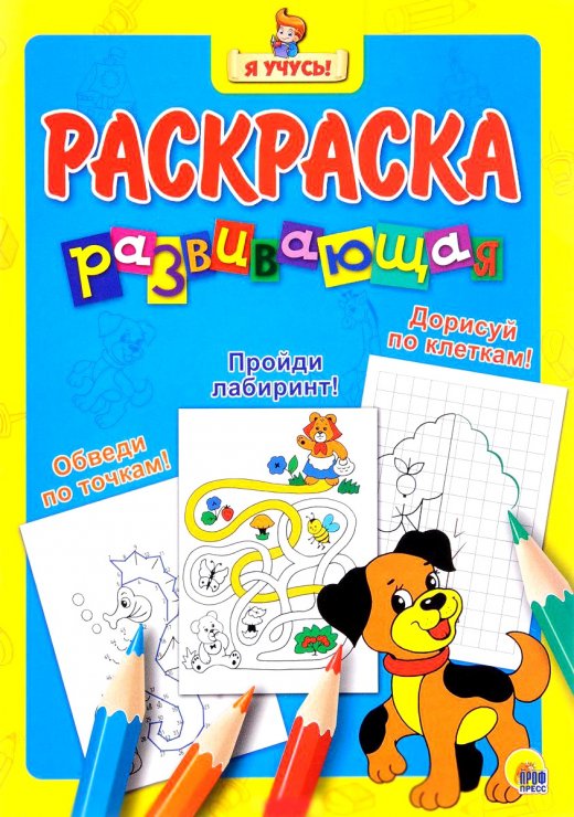 Раскраска развивающая – Развивающая раскраска "Щенок" из серии "Я учусь!" состоит из 8 листов с черно-белыми рисунками и простыми заданиями. В раскраске ребенок найдет лабиринты, не дорисованные картинки, точки, которые надо соединить, и многое другое. Такая раскраска позволит сочетать творческую деятельность и логические упражнения. Ребенок сможет раскрашивать картинки в яркие цвета, а после этого выполнять интересные задания. В этой книге есть всё, что нужно для всестороннего развития вашего малыша.