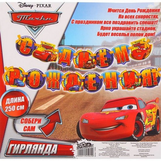 Купить Гирлянду С Днем Рождения 250см Тачки в Новосибирске Вы можете в магазине развивающих и настольных игр "Игры Почемучек"