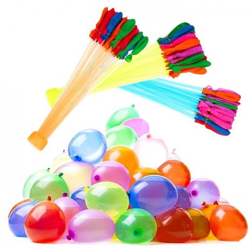 Сделать активную игру ребенка увлекательнее поможет игровой набор "Водяные бомбочки". Набор состоит из трех связок резиновых разноцветных шариков, которые заполняются водой и превращаются в забавное оружие. Сама конструкция этих приспособлений, напоминающая гроздь, выполнена следующим образом: от переходника отходят трубочки, к каждой из которых прикреплен шарик. Стоит лишь прикрутить связку к крану или садовому шлангу, затем дать напор, после чего все шары начнут одновременно заполняться! Скорость приготовления нескольких десятков водяных бомбочек за один раз действительно приятно удивляет, ведь всего лишь за минуту получится заполнить водой целую сотню шариков.