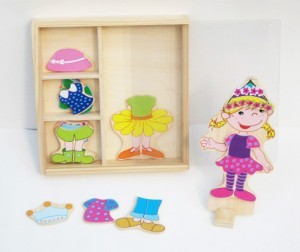 Разрезные картинки "Одень девочку"- великолепный подарок для маленькой модницы. В комплекте деревянная кукла на подставке и элементы одежды. В каждом элементе есть скрытый магнит, поэтому детальки хорошо держатся на фигурке. Все составные элементы набора изготовлены из натурального дерева, покрыты безопасными красками на водной основе. С помощью такого набора ребенок может создавать самые разные образы своей кукле, экспериментируя в сочетаниях комплектов одежды и аксессуаров. Комплекты одежды разнообразные, на все случаи, на любую погоду.
