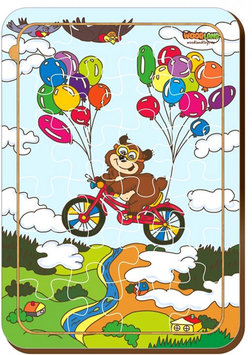 Пазлы - любимая игрушка детства. Собрать целое из кусочков - очень увлекательное занятие. Родители и педагоги должны помогать ребенку только в том случае, если у малыша возникло затруднение при сборке. Не стоит собирать пазл вместо ребенка. Пазл "Воздушное путешествие" несомненно увлечет ребенка, а после того, как кропотливая робота по сборке будет завершена, юный любитель головоломок увидит забавного медвежонка, который путешествует необычным способом. Пазл выполнен из дерева, все 24 детали яркой картинки хорошо обработаны — они надежно соединяются между собой и образуют гладкую поверхность.