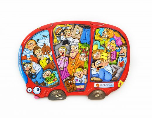 1. Попросите ребенка найти и посчитать всех пассажиров с усами, пассажиров в очках.  Какое животное едет в автобусе?  Посоревнуйтесь, кто быстрее найдет пассажира с книжкой, с гитарой, пассажира-жулика и т.п.