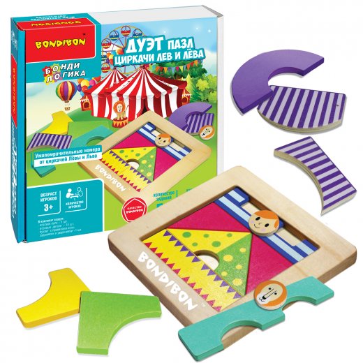 Купить Логическую игру Bondibon Дуэт пазл Циркачи Лев и Лёва в Новосибирске Вы можете в магазине развивающих и настольных игр "Игры Почемучек".