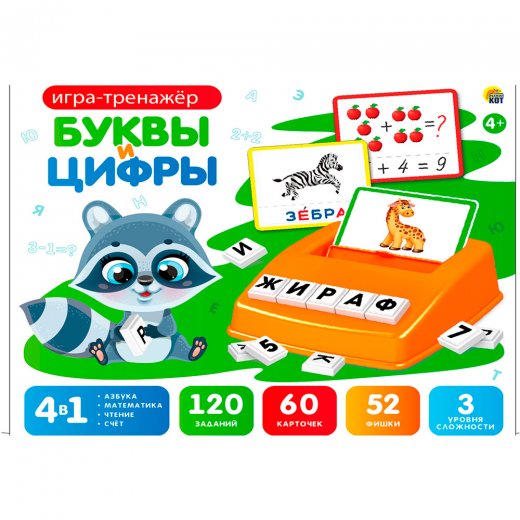 Игра-тренажер "Буквы и цифры" — это увлекательное занятие, которое развивает математические способности и навыки чтения. Три уровня сложности на двухсторонних карточках в игровой форме познакомят ребенка с буквами и цифрами, предложат потренироваться в счете и пополнить словарный запас.