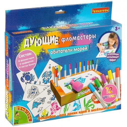 Купить Дующие фломастеры Обитатели морей 12 цветов в Новосибирске Вы можете в магазине развивающих и настольных игр "Игры Почемучек"