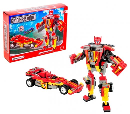 Соберите неуловимый спорткар и отправляйтесь покорять скоростные трассы. Завоюйте звание чемпиона, а когда победа будет за вами, превратите болид в неуязвимого робота. С таким героем мальчишка придумает множество увлекательных сюжетов. Набор содержит 129 деталей и позволяет сконструировать непобедимого супергероя или гоночный спорткар. Элементы изготовлены из высококачественной пластмассы, надёжно соединяются между собой и разбираются без особого труда.