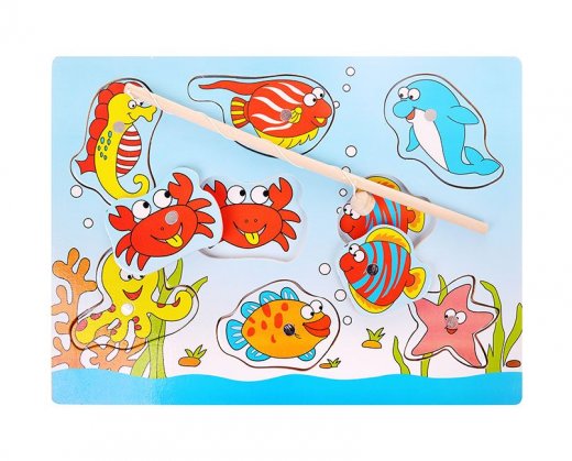 Комплектация: рамка, 8 вкладышей морских обитателей, удочка