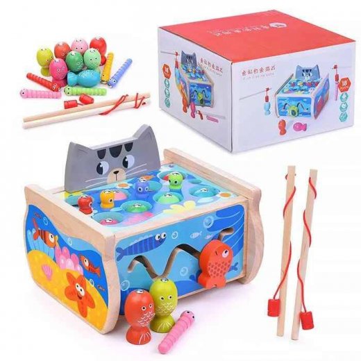 Деревянная игрушка магнитная рыбалка "Кошкина добыча" - это яркая и увлекательная игра для детей. Она поможет развить у ребенка внимание, моторику, координацию движений и логическое мышление . Задача ребенка - поймать всех рыбок и червячков с помощью удочки. Две удочки в комплекте позволяют ловить сразу двумя руками, что делает игру более полезной для развития ребенка. А также можно играть, вдвоем, делая игру более интересной. Деревянная игрушка изготовлена из качественных материалов и безопасна для здоровья ребенка. Она станет отличным подарком и поможет разнообразить досуг вашего малыша.