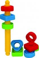 Винт выполнен в виде палочки с резьбой и гаек разного цвета и формы.