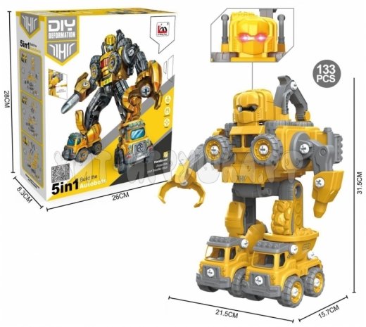 Конструктор болтовой Трансформер желтый 5 в 1 133 дет