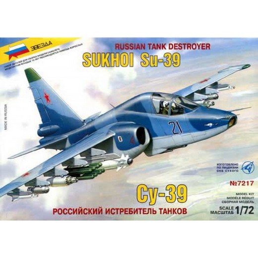 Сборная модель "Российский истребитель танков СУ-39" позволит вам и вашему ребенку собрать уменьшенную копию российского истребителя. Су-39 является дальнейшим развитием известного советского штурмовика Су-25 и предназначен для использования в качестве истребителя танков, для чего оснащен мощнейшим комплексом вооружения. Готовый самолет будет выглядеть весьма реалистично, поскольку в процессе создания пластиковых деталей использовались настоящий чертежи "Су-39".