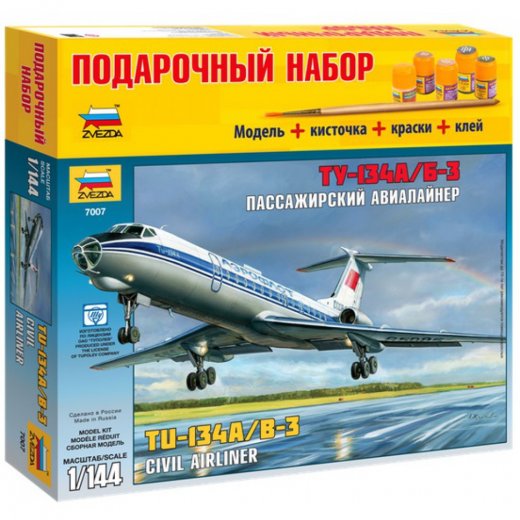 Набор подарочный сборка "Пассажирский авиалайнер" позволит вам и вашему ребенку собрать уменьшенную копию пассажирского авиалайнера Ту-134А/Б-3 в масштабе 1 к 144 и длиной в 53 см. В наборе помимо деталей для сборки, так же входят краски, кисть и клей, для соединения деталей между собой. Элементы наборы изготовлены из высококачественной пластмассы, безопасной для ребенка.