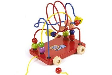 Серпантинка-каталка "Львенок"- красочная каталка-лабиринт, который будет интересен самым маленьким детишкам. Лабиринт  находится на цветных колесиках, его можно тянуть за собой на веревочке.  На основании лабиринта прикреплена  изогнутая в разных плоскостях проволока. Она статична, вогнуть ее малыш не сможет. Посередине нарисован задорный львенок. В лабиринте бусинки выполнены в виде различных геометрических фигур и окрашены в разные цвета. А на некоторых из них есть маленькие рисунки. На игрушке 3 разноцветные проволоки и 14 фигурок с дырочками. Это еще и каталка, которая отлично развивает координацию движений ребенка. Малыш должен везти каталку за собой, тянуть ее за веревочку. Поначалу это будет трудно. Он будет пытаться идти спиной вперед, чтобы видеть, как она за ним едет. Помогите малышу, объясните, что он может идти вперед, а каталка будет ехать за ним. Часто дети, везя за собой каталку, высоко поднимают ручку с веревкой, и каталка опрокидывается. Игрушка выполнена из прочного и высококачественного дерева, безопасного для вашего малыша.