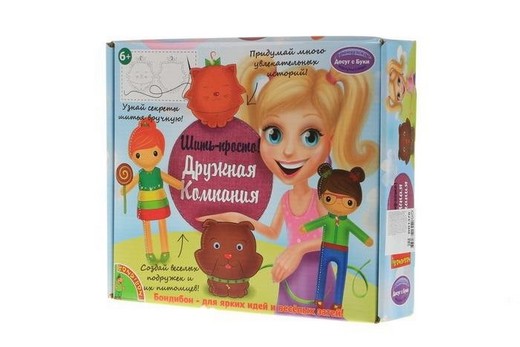 Набор для творчества Дружная компания позволяет сшить две куколки и двух очаровательных животных.