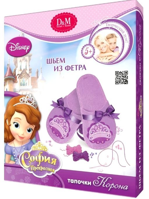 В наборе есть все необходимое для того, чтобы сшить прелестные тапочки - фетровые заготовки, нитки, безопасная пластиковая иголка и декоративные детали. К тому же на тапочках нанесено изображение короны, ведь носить их будет настоящая маленькая принцесса! Особенность набора заключается в том, что шитье совершенно безопасно для ребенка. Фетровые детали специально перфорированы так, что легко сшиваются безопасной иглой. А разнообразные декоративные элементы помогут украсить ваши тапочки, открывая безграничный простор для фантазии.