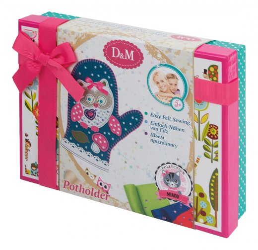 Особенность набора заключается в том, что шитье совершенно безопасно для ребенка. Фетровые детали специально перфорированы так, что легко сшиваются безопасной иглой. А разнообразные декоративные элементы помогут украсить вашу прихватку, открывая безграничный простор для фантазии.