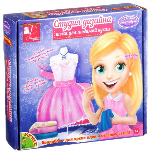 Этот творческий набор обязательно должен понравиться юным рукодельницам и модницам, ведь это целая студия дизайна кукольной одежды. Девочки смогут сшить кукольную одежду, которая ни в чем не уступает настоящей. Именно так одежду изготавливают дизайнеры-модельеры  используя выкройки и лекала. Полученную одежду можно будет декорировать различными украшениями. Подари своей кукле новые наряды!