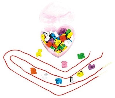 Шнуровка в банке 60 дет. "Животные"- это набор мелких деталей разной формы и цвета, уложенный в пластиковый чемоданчик в форме сердца. В комплект также входят два длинных шнурка с деревянными наконечниками, облегчающими процесс вдевания.