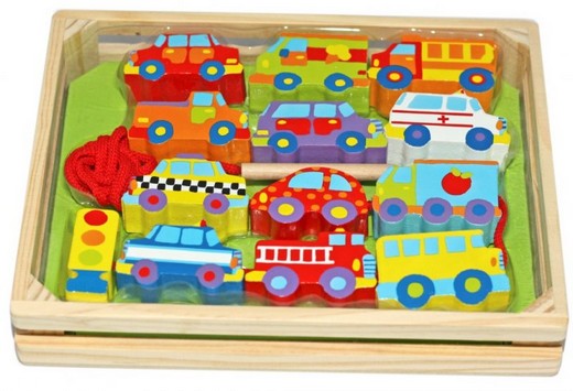 Шнуровка "Транспорт" представляет собой замечательный набор деревянных фигурок, выполненных в виде разноцветных машинок и светофора. Шнуровка отлично подойдет не только для шнурования, но и для тематических игр. Крупные бусины могут легко курсировать по игрушечному городу, а затем нанизываться на шнурок, и образовывать настоящую "улицу" с интенсивным движением. На шнурке предусмотрена специальная безопасная деревянная игла, которая облегчает процесс надевания бусины. Все детали изготовлены из экологически чистой древесины и абсолютно безопасны для детей. Яркий цвет и приятный на ощупь материал обязательно заинтересуют вашего малыша и привлекут его к игре.