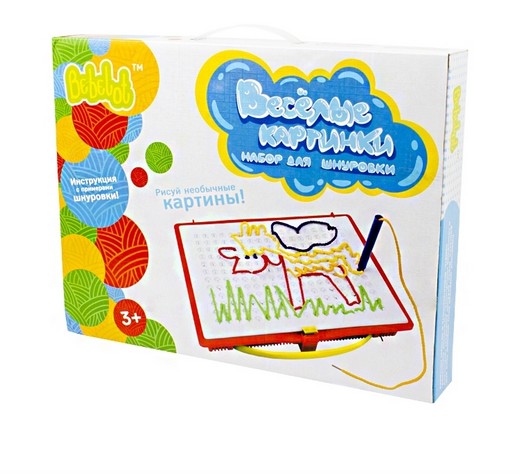 Набор для шнуровки в чемоданчике Bebelot "Веселые картинки" - это не только интересная, но и очень полезная игрушка, которая станет отличным подарком для Вашего малыша! Сначала ребёнок сможет потренироваться, повторяя предложенные в инструкции способы шнуровки, а затем, дав волю своей фантазии, создавать множество собственных неповторимых картин и узоров.