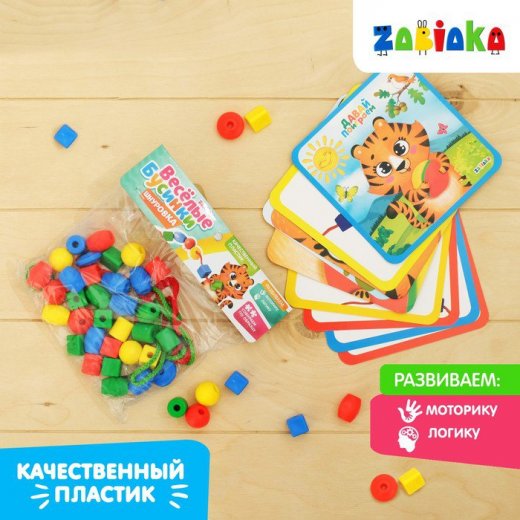 "Веселые Бусинки Шнуровка" станет незаменимым помощником в развитии и обучении Вашего ребенка. Игра-шнуровка поможет развить мелкую моторику и логику ребёнка. В комплект входит пазл и карточки с заданиями, по которым малышу нужно собрать простые и сложные фигуры.