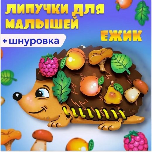 Купить Шнуровку с липучками Ежик в Новосибирске Вы можете в магазине настольных и развивающих игр "Игры Почемучек"