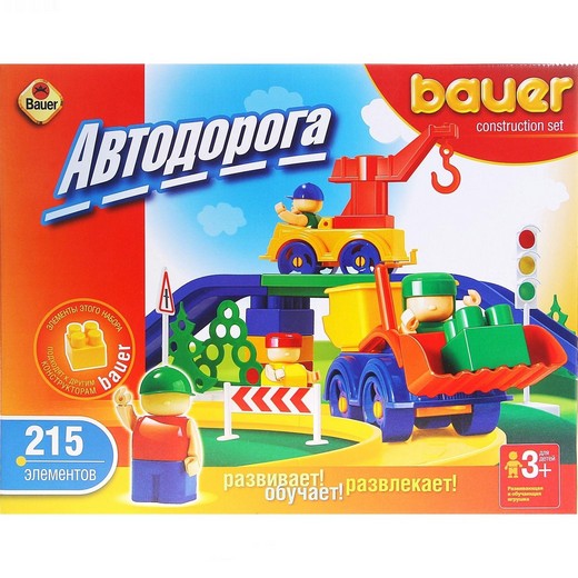 В наборе представлены забавные мини-фигурки, с которыми можно придумать свой уникальный сценарий игры. Из деталей набора ребенок сможет собрать замечательную автодорогу, по которой в своих машинках будут передвигаться забавные мини-фигурки человечков.