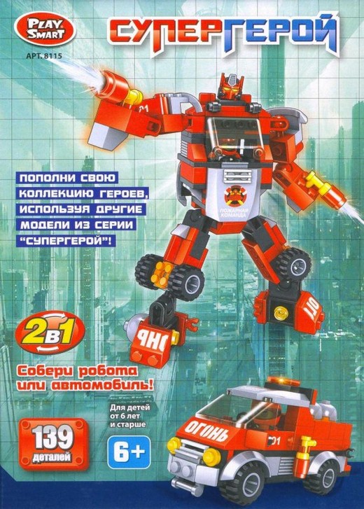 Конструктор "Супергерой 139 дет." станет любимой игрушкой любого мальчишки, ведь собирать конструктор это всегда так весело и интересно. С помощью данного конструктора ребенок может собрать или робота, или пожарную машину. Оба варианта игрушек получатся функциональными - автомобиль сможет ездить, а руки и ноги у робота будут сгибаться. Входящая в комплект мини-фигурка спокойно помещается как в кабину пожарной машины, так и в отсек в корпусе робота. Конструктор будет хорошим подарком мальчишкам, которые любят собирать игрушки своими руками, а робот отлично впишется в любую приключенческую игру. Детали конструктора выполнены из высококачественной пластмассы, безопасной для вашего ребенка.