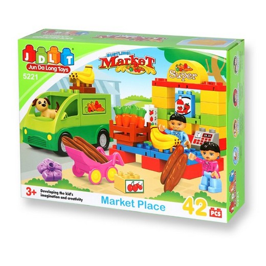 Конструктор "JDLT Рынок: Доставка продуктов" способствует развитию пространственного мышления, воображения, мелкой моторики, фантазии, усидчивости, ребенок учится работать по схеме, а также создавать свои собственные проекты.Рекомендуемый возраст: от 3 лет