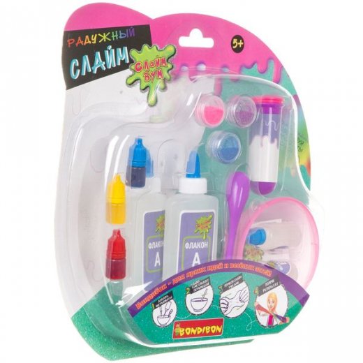 Набор Радужный слайм Bondibon от Слайм Бум дает возможность сделать слайм всех цветов радуги, используя всего лишь три красителя! Как? Очень просто! Для этого всё необходимое уже есть в наборе основной раствор 2 шт., контактный раствор 2 шт., красители 3 шт., флакон с блестками 3 шт., ложка, колба, миска, инструкция. Устройте домашнюю мини-лабораторию по производству слаймов. Проводите полимерно-гелиевые опыты и экспериментируйте! Бондибон - для ярких идей и веселых затей!