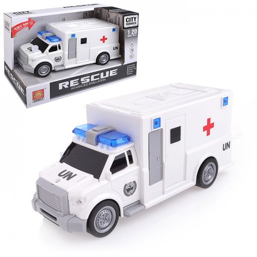 Машина "Скорая помощь CITY SERVICE" представляет собой реалистичную модель транспорта экстренной службы, которую невероятно просто приводить в движение простым откатом в обратном от желаемого направлении.
