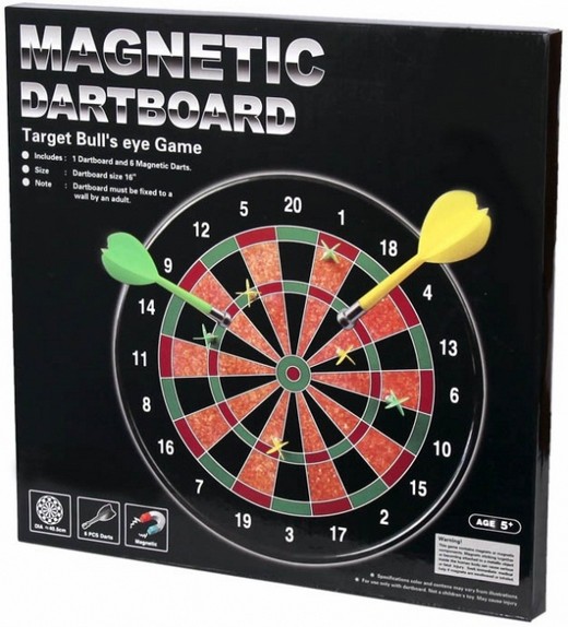 Настольная игра «Дартс магнитный Baili 34.5 см.» это тот же самый дартс, но адаптированный для детей. Здесь нет острых наконечников о которые можно уколоться. В этой версии дартса наконечники дротиков магнитные и дети смогут свободно орудовать ими! Игроки кидают их в дартс, метя в самую середину.