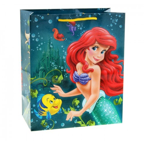 Подарочный пакет Ариэль – можно использовать как небольшой презент или как красивую упаковку под непосредственный подарок. Ламинированные бумажные пакеты — лидеры по популярности среди подарочной упаковки. Выполнен он в ярких и красочных тонах, с изображением очаровательной русалочки Ариэль, такой красочный пакет непременно понравится девочке и подарит ей праздничное настроение.