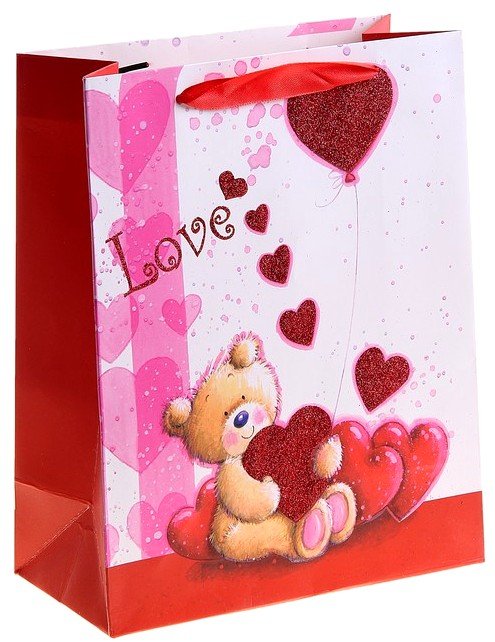 Пакет Мишка с шариками из сердец - можно использовать как небольшой презент или как красивую упаковку под непосредственный подарок. Ламинированные бумажные пакеты — лидеры по популярности среди подарочной упаковки. Выполнен он в ярких и красочных тонах, с изображением милого мишки, держащего шарики в виде сердец.
