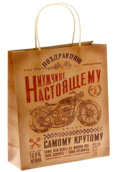 Подарочный пакет Настоящему мужчине – сможет стать отличным презентом или упаковкой для подарка. Данный пакет выполнен в классическом строгом стиле для мужчин, что подчеркнет стиль именинника, а подарок станет самым запоминающимся и особенным. Бумажные пакеты — лидеры по популярности среди подарочной упаковки. Он изготовлен из прочной бумаги и имеет две ручки, выполненные из текстиля. Благодаря качественной печати рисунок не сотрётся и не выгорит. Подарки не обязательно делать только по важным поводам. Дарите их спонтанно, без причины, просто для души, ведь главное в этом процессе — удовольствие!