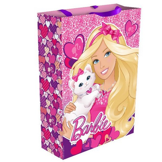 Яркий подарочный пакет «БАРБИ» с очаровательной куколкой и ее милой кошечкой романтично украсит подарок и обязательно поднимет настроение юной принцессе.
