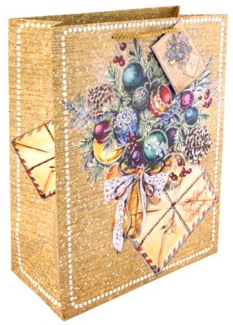 Пакет бумажный Еловый букет - отлично подойдет как небольшой презент или как красивую упаковка под непосредственный подарок. Бумажные пакеты — лидеры по популярности среди подарочной упаковки. Выполнен он в красочных тонах, с изображением красивого праздничного елового букета, с новогодними украшениями. Благодаря качественной печати рисунок не сотрётся и не выгорит и к тому же он достаточно прочен. Так что в дальнейшем его владелец может пользоваться им по прямому назначению, для походов в магазин или хранить в нем любимые вещи и т.п.