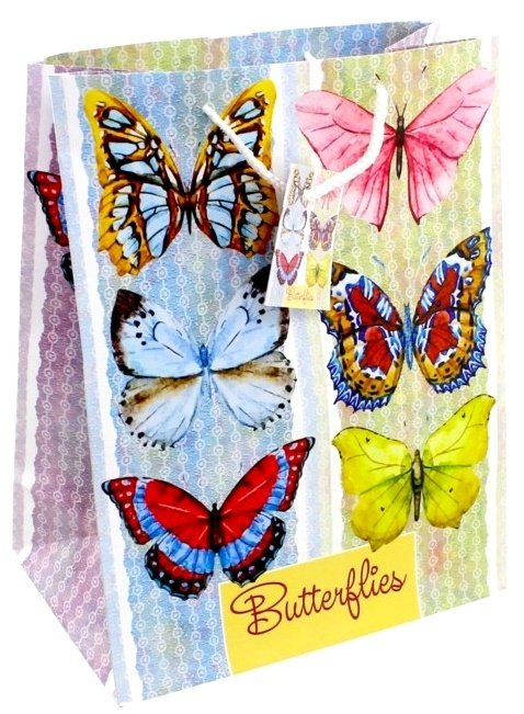Пакет бумажный Тропические бабочки 26х32,4х12,7см