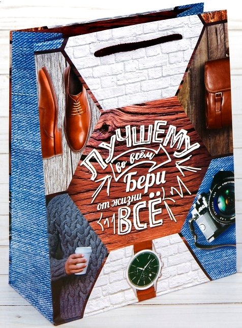 Пакет ламинат вертикальный Бери от жизни все – сможет стать отличным дополнением к презенту. Данный пакет выполнен в классическом стиле, с красивой надписью, с такой упаковкой ваш подарок несомненно станет самым запоминающимся и особенным. Он изготовлен из прочной бумаги и имеет две ручки, выполненные из текстиля. Прочная бумага с атласными ручками и уникальный дизайн делают его идеальным.