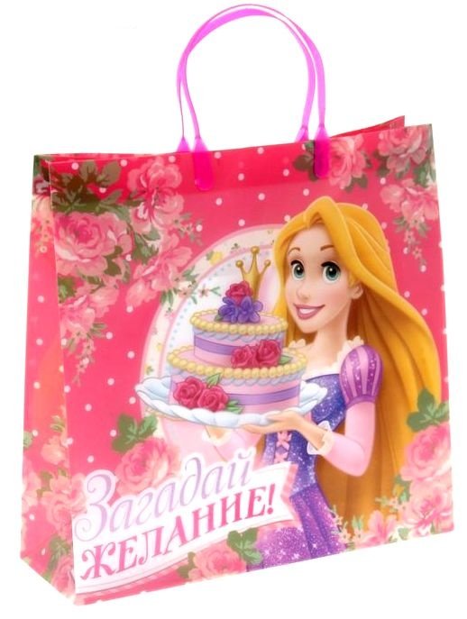 Пакет подарочный пластик Загадай желание Принцессы – сможет стать отличным дополнением к презенту. Подарки не обязательно делать только по важным поводам. Дарите их спонтанно, без причины, просто для души, ведь главное в этом процессе - удовольствие! А сколько радости получит адресат, когда увидит пакет с любимыми героями! Положите в него конфеты или игрушки, и ваш подарок не затеряется среди других.