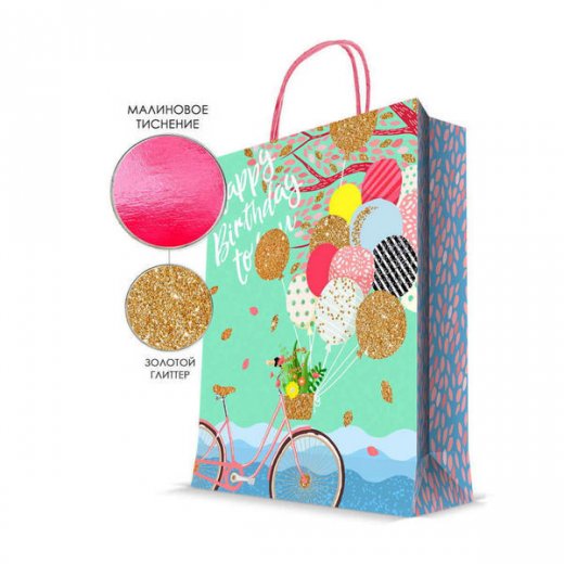- Пакет бумажный Happy Birthday to you Воздушные шарики 26х32,4х12,7 см