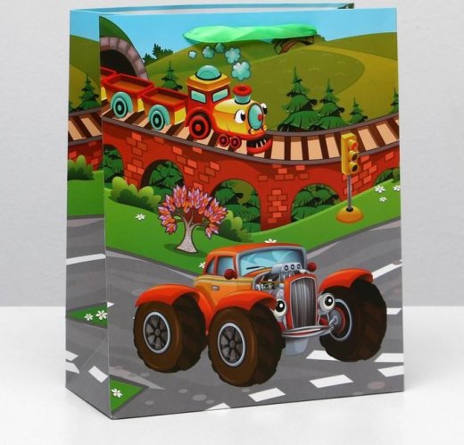 - Пакет подарочный детский Железная дорога 26х32х12 см