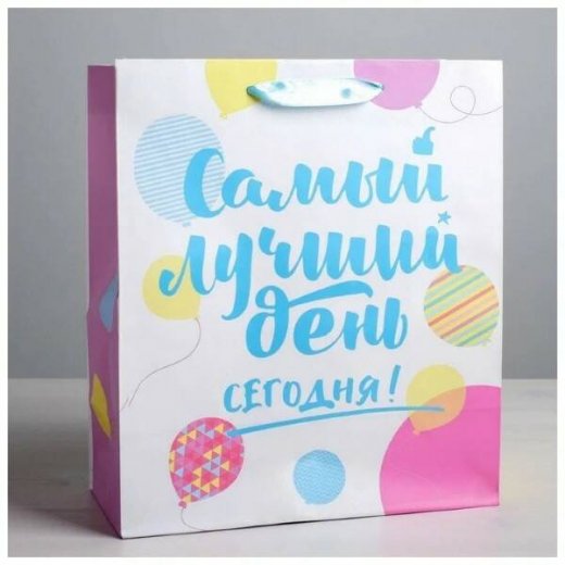 Купить Пакет подарочный «Самый лучший день сегодня!», 23 × 27 × 11,5 см в Новосибирске Вы можете в магазине развивающих и настольных игр "Игры Почемучек".