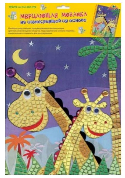 Мозаика Жирафы формата А4 - это набор для детского творчества на самоклеящейся основе из мягкого пластика. С таким набором ребенок сможет провести время с пользой.