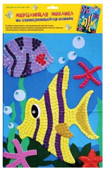 В наборе: пронумерованная цветная основа, цветная самоклеющаяся мозаика из декоративного мягкого пластика.  Размер картины: 26 x 17,5 см. Рекомендуемый возраст: от 4-х лет.