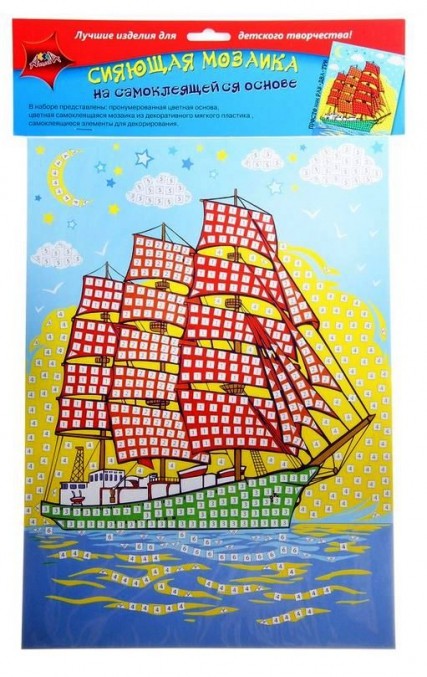 Купить самоклеющаяся сияющая мозаика "Парусник" в Новосибирске Вы можете в магазине развивающих и настольных игр "Игры Почемучек"