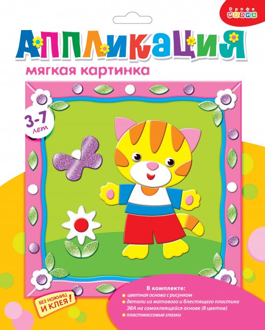 Мягкая аппликация позволит детям интересно и с пользой провести время. Творческий набор по созданию увлекательной аппликации с добрыми и весёлыми иллюстрациями. Детали набора выполнены из мягкого пластика ЭВА с разными покрытиями - мерцающие глиттерные, спокойные матовые, сияющие голографические. Разнообразные блестящие элементы придают картинке оригинальность.