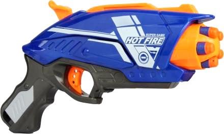 Состав набора: бластер, 10 мягких снарядов, 10 снарядов с присосками.